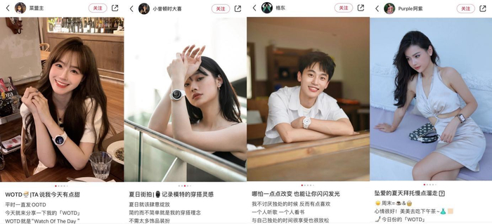 与此同时,#WOTD腕间穿搭 活动还邀请了不同风格的时尚博主分享搭配图文和视频,如@阿毓yuyu 分享夏日实用穿搭,@阿诺anuo_ 介绍爱豆穿搭单品。跟随着通勤、运动、约会、度假等不同场景的穿搭内容,华为Watch GT3 Pro多款专属设计表盘、健康管理功能、上百种专业的运动模式等智能手表的产品卖点也自然传达给了用户。