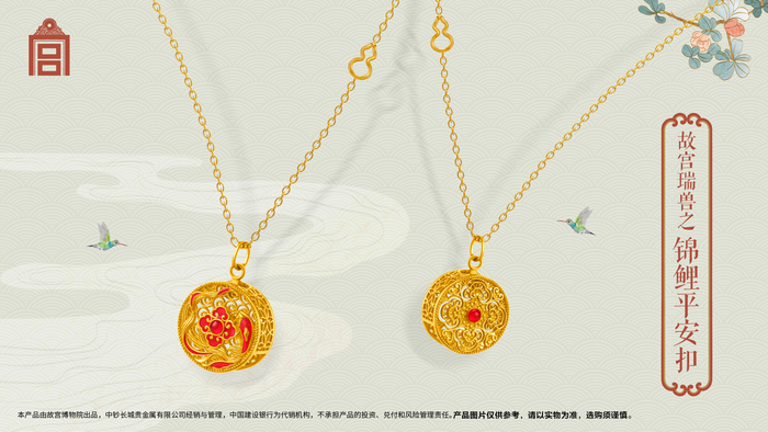 据悉,本季产品是故宫与建行联合推出“故宫瑞兽”系列产品的第四季,前三季产品均以坐落在宫殿各处的瑞兽为主形态演绎,尽显国潮风范,今年则把瑞兽作为祥瑞元素之一点缀于平安扣、平安福守、平安锁形态之上,将传统文化符号与流行款式相结合,时尚度和佩戴感更强。