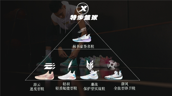 JLIN2 SE是特步继往开来、具有里程碑意义的一款球鞋,定义了特步篮球的标准。以此开始,特步将针对“速度”这个细分赛道构建自己的产品矩阵。未来除了林书豪签名球鞋外,将陆续推出速度型鞋游云、契合夏日的轻质敏捷型鞋轻羽、保护实战鞋鏖战、以及全能型锋卫鞋御风四大系列,逐步构建特步篮球的专业产品矩阵。
