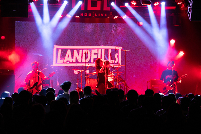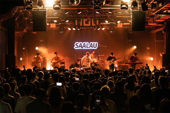 8月17日晚活动开始前,位于KK ONE的深圳HOU LIVE门口排起了长龙,雀跃的观众们有序扫码入场。令观众雀跃的3支登场乐队均来自广东,包括堆填区LANDFILLS、toa-T、沙漏SAALAU。