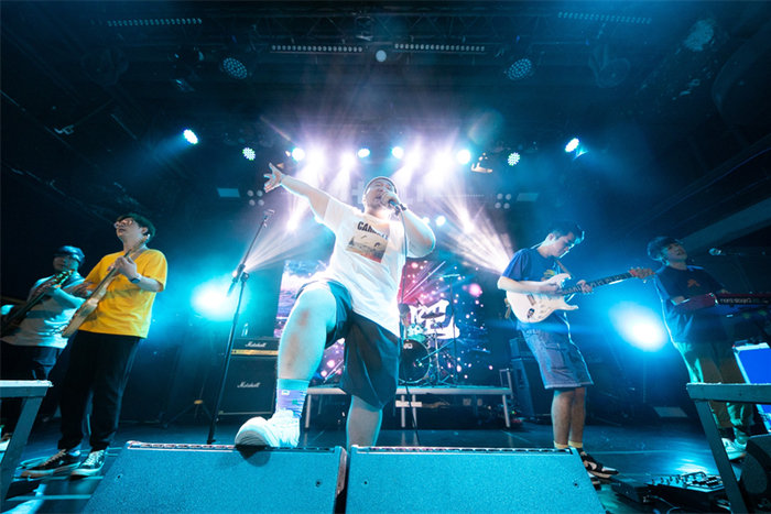 乐手们表演时所穿的时装,来自澳门时尚潮流运动品牌UESOME SPORT、佛山本土时裝品牌CHILLHIGH以及香港品牌CARBALI。UESOME SPORT设计师陈小龙介绍,这次登台的系列是以海洋音乐节文化为灵感做设计发想而来,以多彩的海洋渐变扎染处理面料,体现出海边日晒褪色后的效果,另外静谧绿、海蓝色、野酸莱姆色与橘酱色的相互搭配呈现出夏日的音乐活力。“正是Live House这样的场合,通过乐手现场的音乐表演,更能传递出UESOME SPORT本系列要传达的概念:寻求音乐所带来的身心灵释放,通过服装与音乐表达自我。”