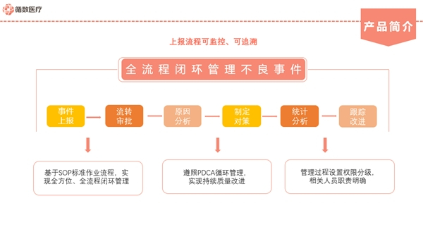 陆文俊介绍道,传统的不安全事件上报流程麻烦,真正上报到国家相关部门的事件少。复繁的不安全事件闭环管理系统,遵照PDCA循环管理,帮助医疗机构提高医院不安全事件预警能力,支持灵活配置模板,一键直接上报至国家系统,极大地节省了上报时间,提高了上报率。