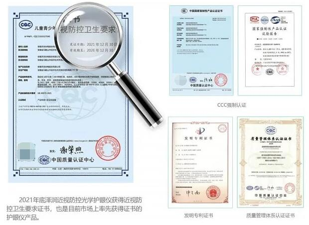 之所以有如此强大的功能,离不开泽润对护眼仪领域的深耕,泽润研发团队历时四年,通过回访全国一万多个不同视力家庭使用情况,经过数万次实验,独立研发出“优视盾”护眼技术,以该技术为核心的泽润近视防控光学护眼仪实现15000h测试,光通维持率依旧达到97%的优秀成绩。2021年底泽润近视防控光学护眼仪获得近视防控卫生要求证书,也是目前市场上率先获得证书的护眼仪产品。