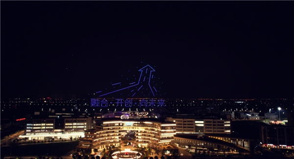 在香港科技大学(广州)校区的夜空,数百台无人机在夜空中装点出了“香港科技大学(广州)”文字和校徽图案及“融合·开创·向未来”的文字和图形等元素,既是欢庆这所高等学府的开门纳新,也预示港科大(广州)的开校,必将引领穗港教育合作开启新篇章。