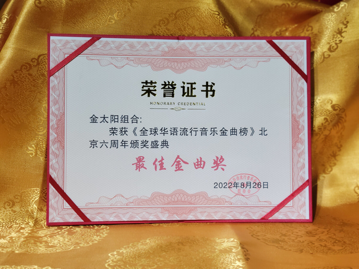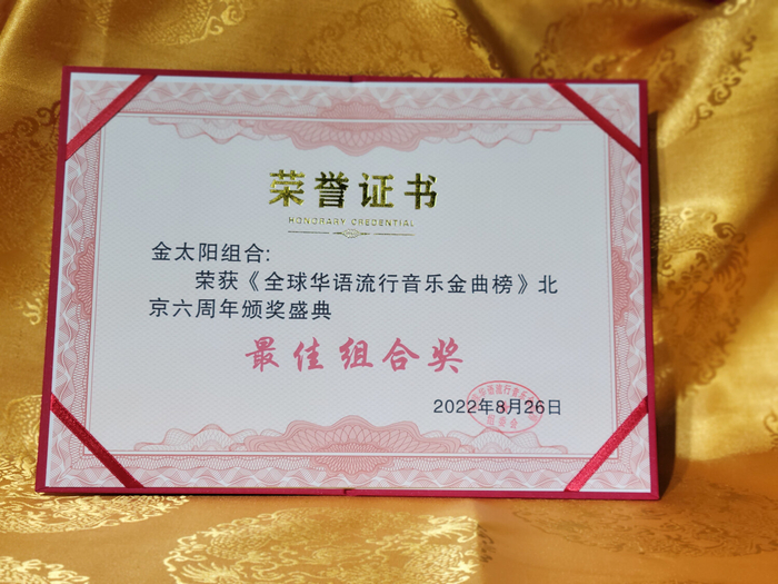 金太阳组合荣获《全球华语流行音乐金曲榜》最佳组合奖,歌曲《中国宝贝》荣获最佳金曲奖,恭贺金太阳组合,祝贺《中国宝贝》歌曲都荣获奖项。