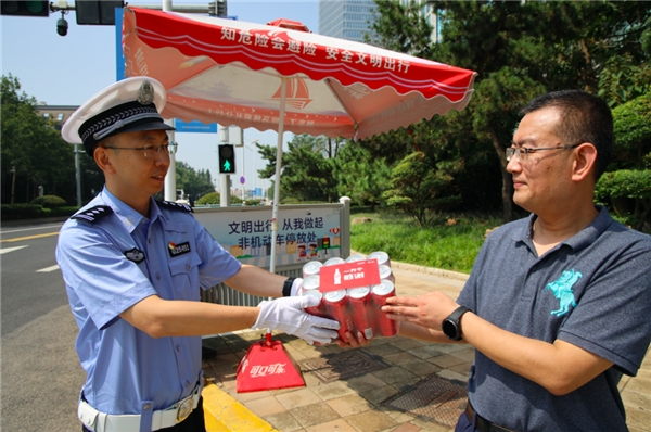 暖心的定制可口可乐送到一线执勤交警手中,执勤交警们也倍感意外和惊喜。“这些都是我们的本职工作,身穿这身警服,我们就有冲在市民最需要位置的责任!非常感谢中粮可口可乐山东公司对我们的支持,我们一定会继续在自己的岗位上发光发热,为岛城文明交通贡献自己的力量!”