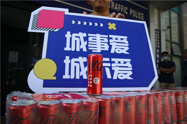 城事爱·城示爱!8月26日,中粮可口可乐山东公司联合半岛都市报将印刻着“雨中英雄 守护青岛”祝福和感谢语的2000个定制罐送给交警,为这群城市英雄们送上了特别的暖心礼物。