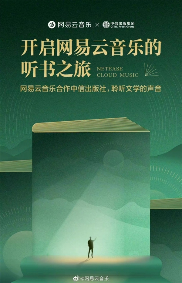 前不久,网易云音乐与中信出版社正式达成版权合作,上线中信出版社全库精品畅销书有声版,作品总量超千册,进一步完善了网易云音乐在文学、历史和哲学等领域的优质有声书版权内容。合作涉及的有声书包括经典畅销、历史巨作、人物传记、成长励志、哲学思辨、情感心理等类型,涵盖《人类简史》、《未来简史:从智人到智神》、《特斯拉传》、《寻找卡夫卡》、《自私的基因》等经典作品。
