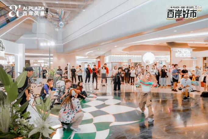本次活动自9月2日起,活动范围涵盖AI PLAZA项目户外露天广场、B1层中庭等室内外区域。在项目B1下沉式广场内,西岸好市与小红书户外共同打造了秋日露营空间,空间融入运动、音乐、派对等元素,搭配INS风造景,对标青年#热门打卡属性标签。活动期间,更有玩野音乐会、夏夜滑板派对、热力巡游、不插电音乐会、随性乐队演出、小型街舞表演、EXPG街舞SHOW CASE等演艺秀组成嘉年华集锦,在现场不定期上演。
