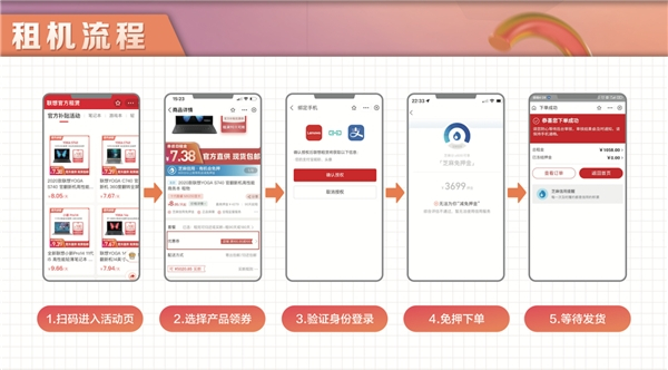 此次联想服务围绕的“新机实惠租 学习新助力”主题活动,借助人人租数字化平台,为活动试点高校的学生群体提供如小新系列、拯救者系列和yoga等热门系列笔记本电脑。考虑到不少学生用户预算有限,联想服务也准备了特殊关怀。学生用户可通过特殊入口,定向领取联想官方派发的租机优惠券下单选购,新款联想电脑最高补贴2000元!(在这个过程中,“联想官方租赁”小程序也会进行核销,确保流程公正)。之后学生用户通过支付宝信用免押的方式下单,还可减免租金,最终以较低的费用租到自己心仪的电脑。