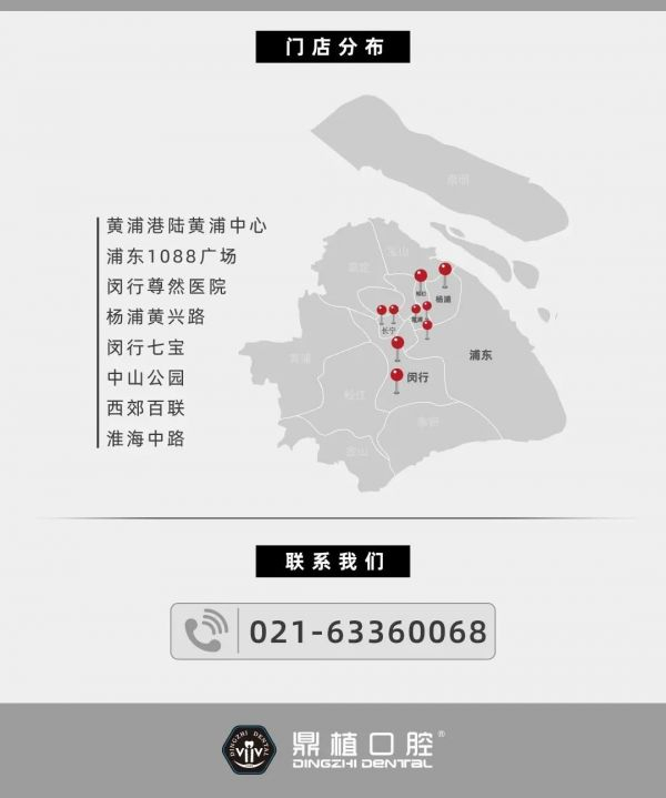 目前鼎植口腔在上海已经拥有8家门店,遍布人民广场、八佰伴、中山公园、五角场、淮海中路等核心地带。