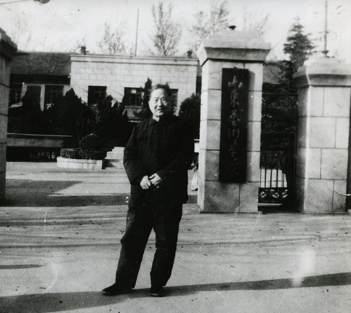 山东艺术学院校门:首任院长冯毅之在校门前留影
