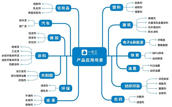 广州市一化数字科技有限公司「一化工」是一家主要从事高分子材料功能助剂研发、生产、销售与技术服务的新材料科技企业。 一化工成立于2022年,目前聚焦于功能助剂在环氧胶、聚氨酯胶、运动场地、环氧地坪及PCB线路板油墨领域的应用,产品广泛应用于电子、汽车、新能源、建筑、体育、涂料、塑料、油墨、橡胶等行业,核心产品包括分散剂、消泡剂、流平剂、润湿剂、防沉剂、催化剂、增塑剂、扩链剂、抗氧剂、紫外线吸收剂、水性树脂及固化剂等。