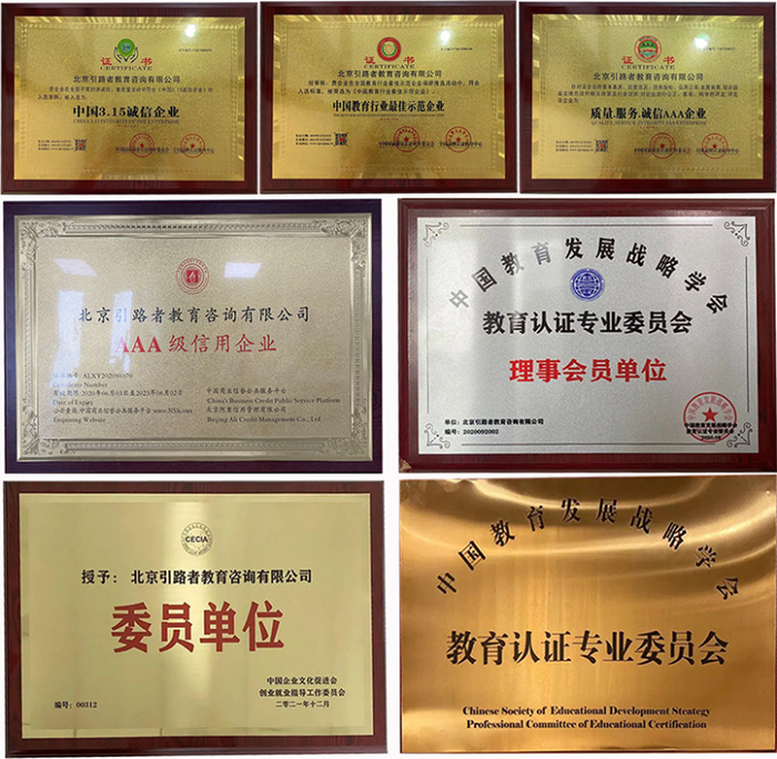 北京引路者教育咨询有限公司依托于成熟的专业化咨询体系和高品质服务体系,获得了业内以及近十万学员的一致好评,收获了良好的口碑,荣获“质量、服务、诚信AAA企业”,“3.15诚信企业”“教育示范企业”等多个荣誉称号,成为中国教育战略发展学会教育专业认证委员会理事单位。