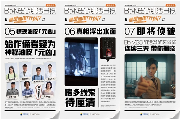 基于对油皮的深刻洞察,BM肌活于8月26日产品上市当天,同步上线了剧情短片《谁是油皮「元凶」》,并结合剧情视频推出了《谁是油皮「元凶」》剧本杀和H5互动剧场。