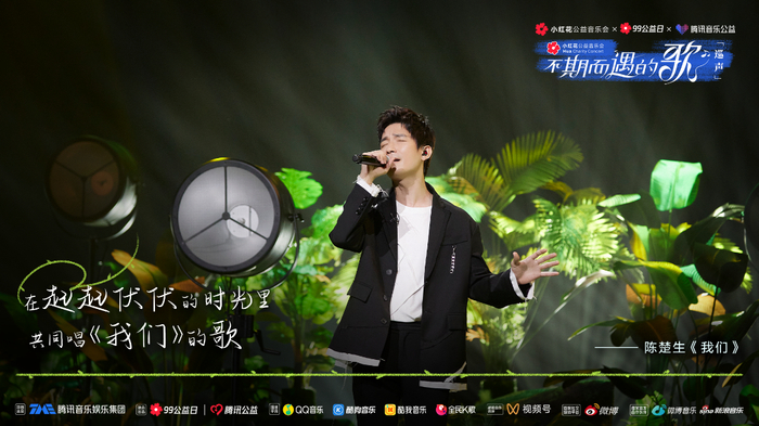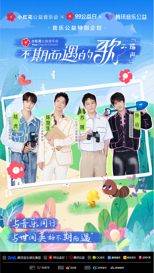 99公益日之际,腾讯音乐娱乐集团携手腾讯公益联合打造了音乐公益特别企划——小红花公益音乐会之不期而遇的歌·巡声公益音乐会,邀请陈楚生、苏醒、张远、陆虎四位音乐人化身小红花公益筑梦官,用“温度物件”开启了三位公益人的温暖故事。该场音乐会于9月2日19:30,通过QQ音乐、酷狗音乐、酷我音乐、全民K歌以及腾讯音乐公益视频号、腾讯公益视频号共同播出,呼吁大家环保要从身边点滴小事做起,并鼓励更多人参与到公益事业中来。
