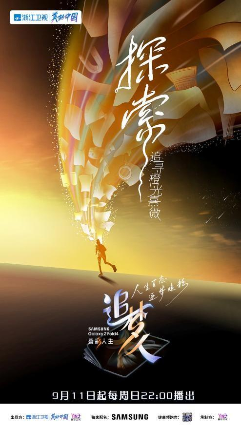 从“开合人生”、“无界人生”,到本季的全新主题“叠彩人生”,节目坚持以各行各业代表人物的逐梦旅途作为蓝本,探索追梦人的灿烂故事,传递以不懈追梦折射时代精神的态度与信念。9月11日起,每周日晚22:00,由三星Z Fold4独家冠名的深度访谈志《追梦人之叠彩人生》将登陆浙江卫视,“人生百态,逐梦焕彩”,让我们一起期待更丰富、更多元、更包容的叠彩追梦故事!