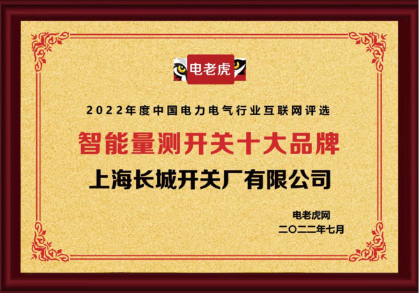 2022中国“智能量测开关十大品牌”旨在表彰智能量测开关年度优秀企业,提升品牌地位和影响力,获得更多行业荣誉。经过数十天激烈的竞争,上海长城开关厂有限公司凭借超强的综合实力及品牌影响力荣获“智能量测开关十大品牌” 荣誉称号。