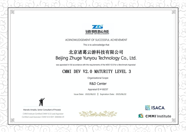 诸葛智能顺利通过Cmmi软件能力成熟度认证