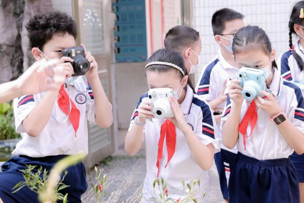 在理论课程讲解后,同学们兴奋地拿着拍立得相机走进校园篮球场、操场、花园、办公室、生物园等多个平时熟悉的地方,第一次用独特的视角去观察学校的建筑及环境,不少同学边拍摄边谈论,“我计划将拍好的校园景色图,制作成视觉板报送给老师!”我们看到,不少同学纷纷发挥自己的创意,有的记录了学校花园中的各式植物、有的则定格老师认真批改作业的瞬间、还有的则拍摄了生物园中的稀有生物。