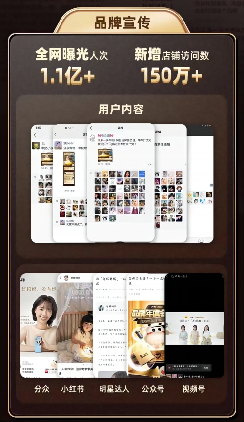 会员日期间,通过明星达人、小红书、公众号、视频号以及分众等渠道带动全网1.1亿次曝光,新增店铺150万+访问。目前「认养一头牛」品牌会员总数突破2000W,消费会员年溢价1.7倍增长。