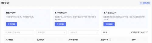 目前,星云有客将客户SOP细分为「新客户SOP」、「客户培育SOP」、「客户旅程SOP」三种场景的SOP任务,帮助商家更轻松实现对新客户的接待培育、老客户的维护以及沉睡客户的激活。