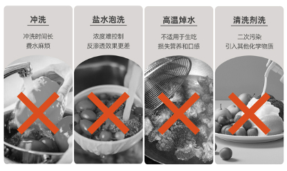 当然,如果你愿意花半个钟进行冲洗、浸泡、揉搓果蔬的,也不一定要购买果蔬清洗机,只要用对手洗方法,也是可以去除部分农残、细菌的。