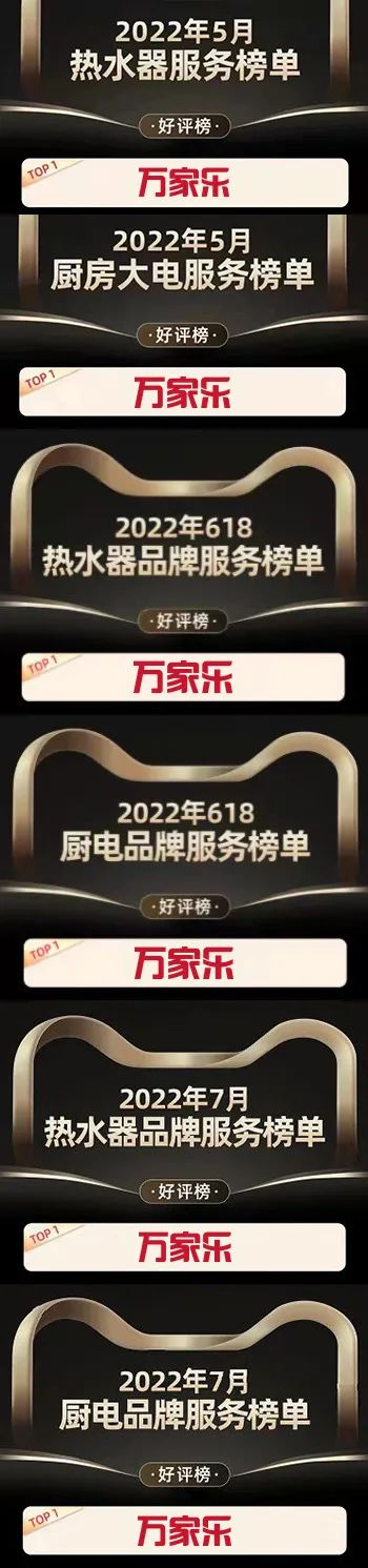 近年来,万家乐积极推进品牌+平台+服务的深度跨界合作,为消费者打通售前、售中、售后三端服务。同时,万家乐还会定期举办“180天只换不修”等服务升级活动,打造差异化服务优势。据天猫服务口碑榜单显示,万家乐已位列天猫5月、618、7月热水器和厨电品牌服务好评榜榜首,连续3月好评度TOP1,产品和服务双双获得用户认可。