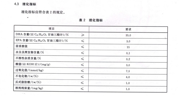 根据国家粮食局颁布的《LS/T 3243—2015 DHA藻油》行业标准:生产DHA藻油的原料、配料;藻油的DHA、EPA含量、酸价、过氧化值等品质指标;色泽、气味、滋味等感官都应该符合标准及国家相关规定。【3】