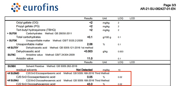 从“小红花测评”“老爸抽检”的检测也可以看到,天然博士DHA藻油的纯度高达43%以上,EPA含量≤0.05%,酸价、过氧化值等指标都远超国家行业标准,也是在“小红花测评”横屏多款DHA藻油中,排名第一推荐的产品。