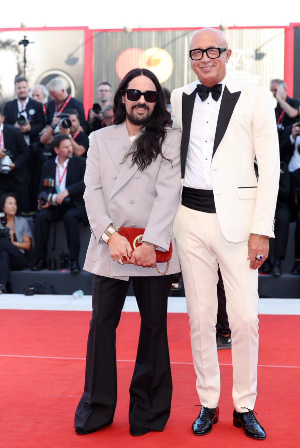 古驰创作总监亚力山卓·米开理(Alessandro Michele)与古驰总裁兼首席执行官Marco Bizzarri一同亮相电影首映礼现场。
