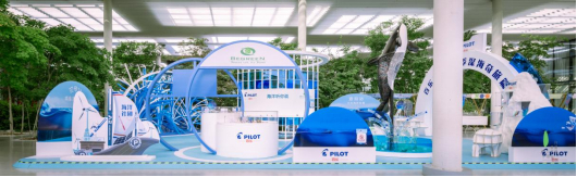 在线上运用入社挑战的形式与年轻群体建立连接后,百乐还在山东日照开设“纳新站”,举办深海奇旅海洋艺术展,为消费者带去沉浸体验。“深海奇旅”艺术展从海洋中提取了水滴、漩涡设计元素,通过艺术的形式为公众打造一个站点打卡式的海洋主题展览。艺术展共设置4大站点,3大分区,分别包括冰洋站、遨游站、浮游站、贝甲站、科普区、P-500雕塑区、产品展示区。