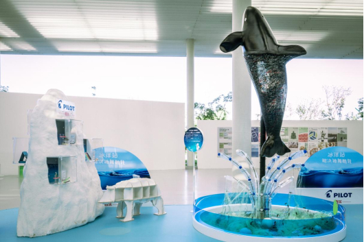 艺术展现场还同步展出了海洋社团“镇社之宝”——BEGREEN海洋社团限定礼盒。据悉,BEGREEN是百乐品牌为响应保护地球环境而设立的产品系列,该系列产品利用再生塑料进行生产,以及增加补充型墨水等方式,减轻因废料产生带给地球的环境压力。