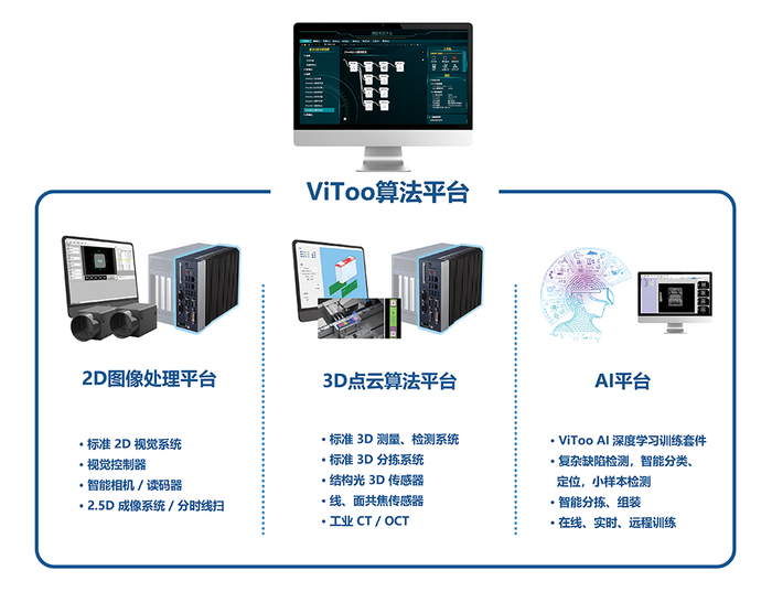 微亚智能即将发布的标准算法平台ViToo Software Platform就是基于以上理念的产物。该标准算法平台下辖三大子平台:ViToo 2D图像处理平台、ViToo 3D点云算法平台以及ViToo AI平台。