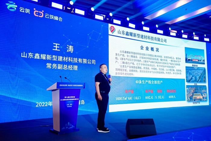 来自山东的本土企业代表山东鑫耀新型建材科技有限公司常务副总经理王涛就装配式ALC产品的优势与应用进行了精彩的产品与技术分享,标准化的工艺和生产线充分保障着企业产能,致力于打造“专、精、特、新”装配式建材龙头企业,助推装配式产品高质量发展。
