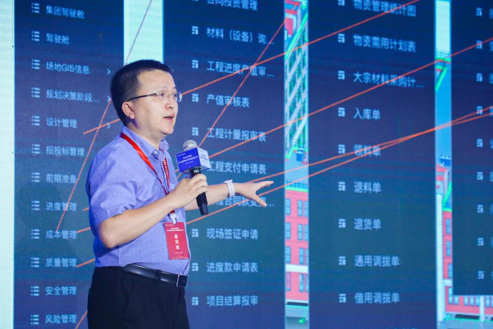 会议现场,还有不少嘉宾做了精彩的专题分享:毕埃慕(上海)建筑数据技术股份有限公司总经理林敏就“国内大型工程BIM协作平台应用实践”进行了实例分享。