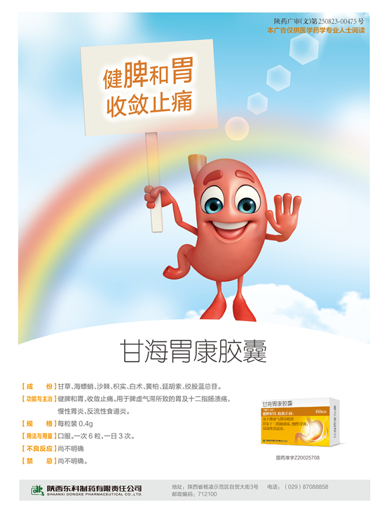 甘海胃康胶囊是济川药业集团旗下陕西东科制药生产的国家医保药品和独家产品,被中华中医药学会发布的《慢性胃炎中医诊疗专家共识意见》《消化系统常见疾病中医诊疗指南》《胃食管反流病中医诊疗专家共识意见》《胃脘痛中医诊疗专家共识意见》《消化性溃疡中医诊疗专家共识意见》等五项指南共识推荐使用。