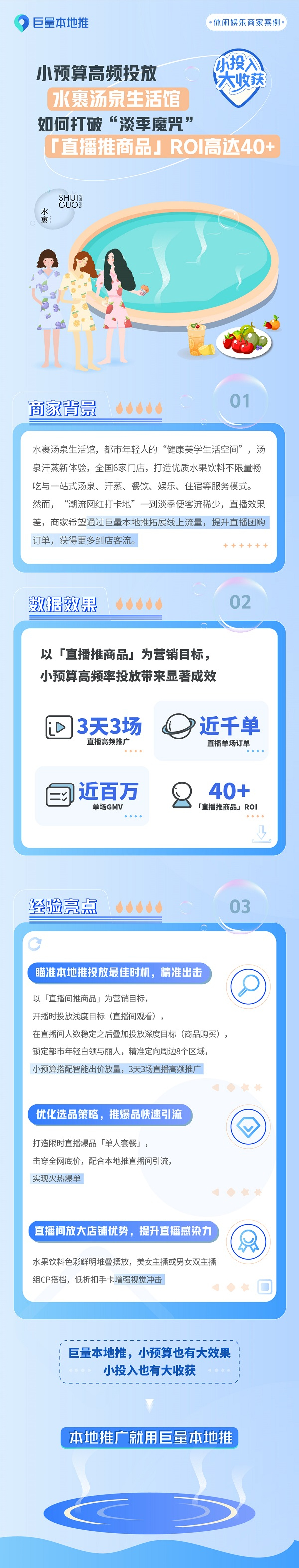01 小预算高频投放 水裹汤泉生活馆直播ROI高达40➕