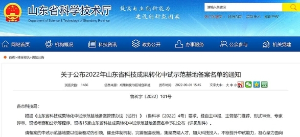 今年初,《山东省科技成果转化中试示范基地备案管理办法(试行)》出台,根据《办法》要求,经自主申报、主管部门推荐、形式审查、专家评审、现场考察和公示等程序,最终对评定结果进行公布。此次科技成果转化中试示范基地备案评选是山东省科技厅首次组织,入选基地项目涵盖医养健康、新能源新材料、先进制造技术、生物技术、双碳与环保、高端化工和现代海洋等领域。