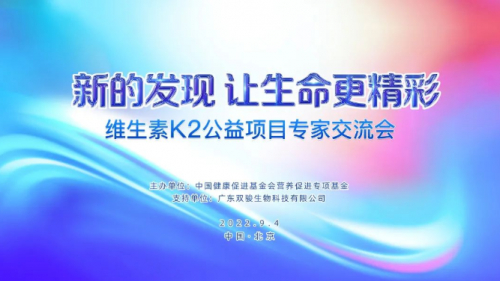 为进一步推动维生素K2的科研和应用发展,9月4日,由中国健康促进基金会营养促进专项基金主办,广东双骏生物科技有限公司支持的“新的发现·让生命更精彩——维生素K2公益项目专家交流会”在北京举办。