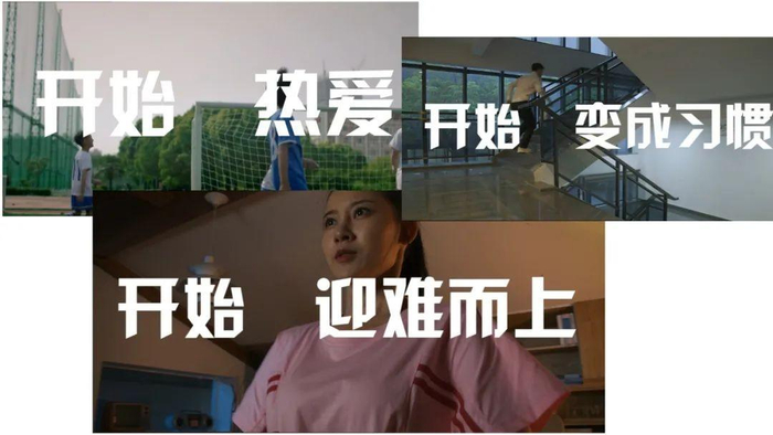 宣传片以“开始热爱”、“开始变成习惯”、“开始告别过去”、“开始迎难而上”、“开始爱上自己”、“开始忘记时间”、“开始勇往直前”、“开始心存信仰”将宣传片划分为8个章节。