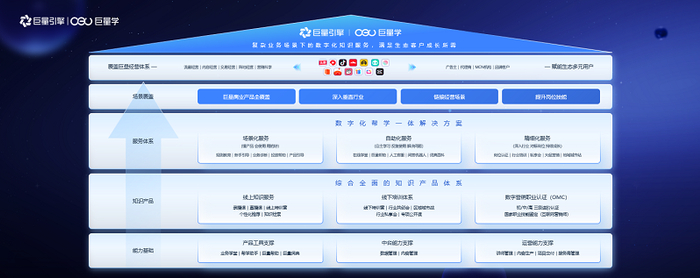 巨量引擎巨量学运营总监孙亚伟分享到,2022年,在“场景化教育”、“全景式帮助”、“标准化内容”的服务体系下,实现“客户自助化学习”,是巨量学的关键业务目标。依托自身产品工具、中台能力、运营能力的支撑,巨量学构建起涵盖线上知识服务、线下培训体系,以及数字营销职业认证(OMC)的知识产品体系。而在服务体系方面,巨量学着力打造数字化帮学一体解决方案,追求场景化、自助化、精细化服务,形成复杂业务场景下的数字化知识服务体系,满足生态客户成长所需。