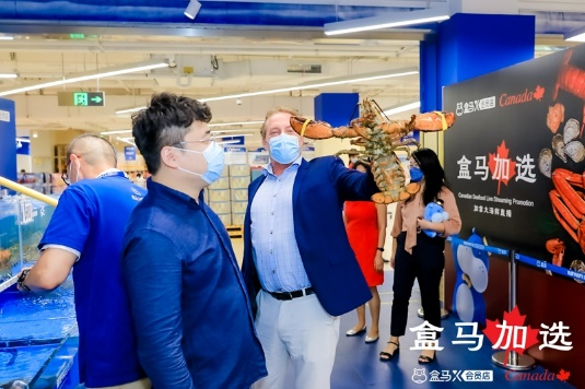 在中秋、国庆双节即将到来之际,加拿大驻上海总领馆携手盒马X会员店一同为粉丝朋友们奉上了一场别开生面的直播活动。直播中,加拿大驻沪总领馆副总领事Jason Reeve先生为盒马X会员店的朋友们推荐了多款盒马X会员店在售的加拿大优质海鲜—加拿大龙虾、雪蟹、珍宝蟹、北极虾、多春鱼和北极贝。