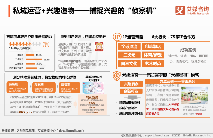 用兴趣配对圈层,将产品设计与不同社交场景进行融合,将会使得产品拥有更好的自传播效应,进一步打开新青年消费市场。品牌的持续探索、挖掘兴趣点,也为优化行业供给和顺应兴趣消费潮流提供助力。