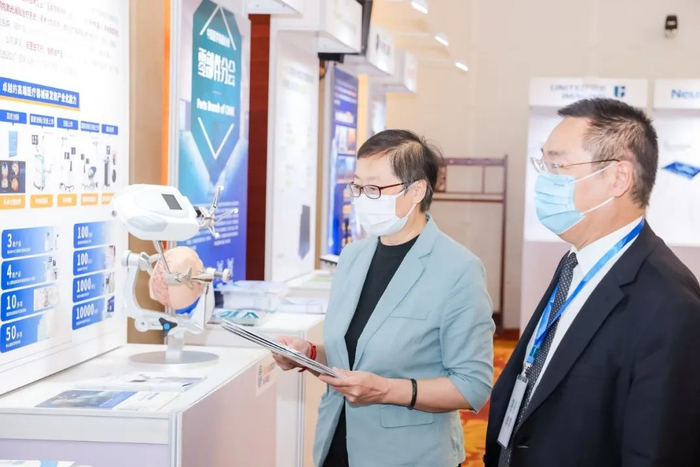 此外,论坛邀请27家相关企业,在现场组织举办了囊括手术机器人、影像设备、呼吸机、体外检测仪等医疗装备及零部件展,其中高端球管、呼吸机比例阀、压力传感器、流量传感器、PCR检测仪、手术机器人等实物展品备受瞩目。