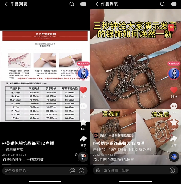 值得一提的是,银饰不同于普通的流行饰品,因为个人体质的缘故,每个人汗液中的酸、硫含量不同,因此很多人佩戴的银饰都会出现发黑、发黄的情况,不了解银饰的消费者就会误以为银饰掉色。为避免诸如此类的误会发生,英姐还会定期拍摄关于“银饰如何保养”等科普类视频,满满干货的内容也在无形中为品牌打下了坚实的粉丝基础。