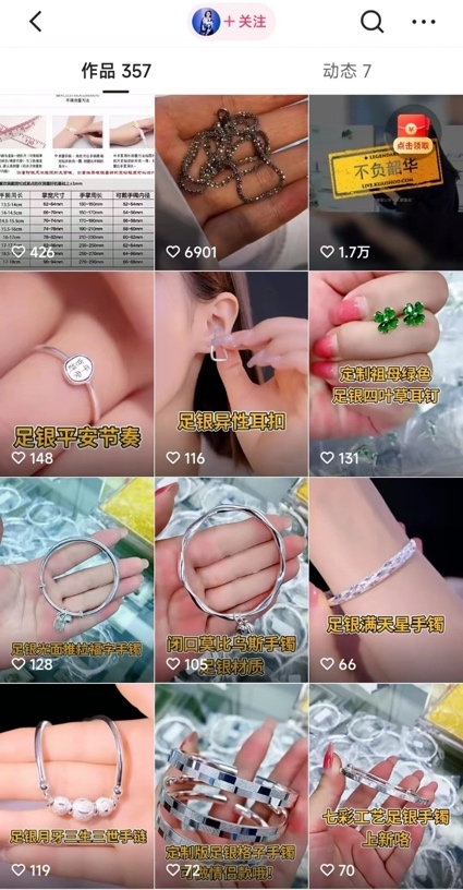 而在直播方面,英姐尝试过搭建直播矩阵或进行跨类目直播,但“广撒网”的模式也意味着定位不够“精专”。“我发现我的方向走错了,没有坚守住做产品的初心,好在我们很快就扳正了发展路线,还是以银饰产品为主。”