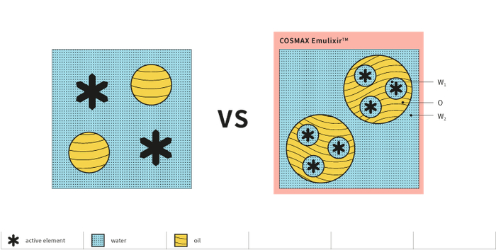 Emulixir™是将难溶性Active成分稳定化,使功效成分有效传达给皮肤的核心护肤剂型技术。以第一层水包油乳液为基础,制造第二层水包油包水多层乳液 将Active成分稳定化,并将保湿成分有效传递给皮肤,使用感非常优秀