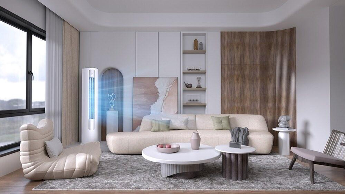 对于大面积客厅的户型而言,空调送风角度和距离尤为重要。如果选择一台送风角度广、距离足够远的柜机,那问题就迎刃而解。