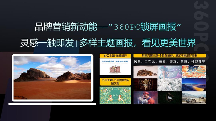 依靠360商业化体系和产品本身的强大优势,360PC锁屏画报满足不同品类品牌的各种营销诉求,帮助品牌在激烈的市场环境下“品效协同”。